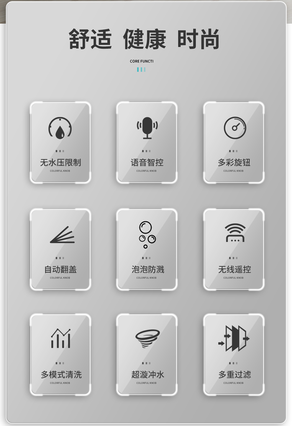 9、按摩清洗        10、無(wú)電沖刷